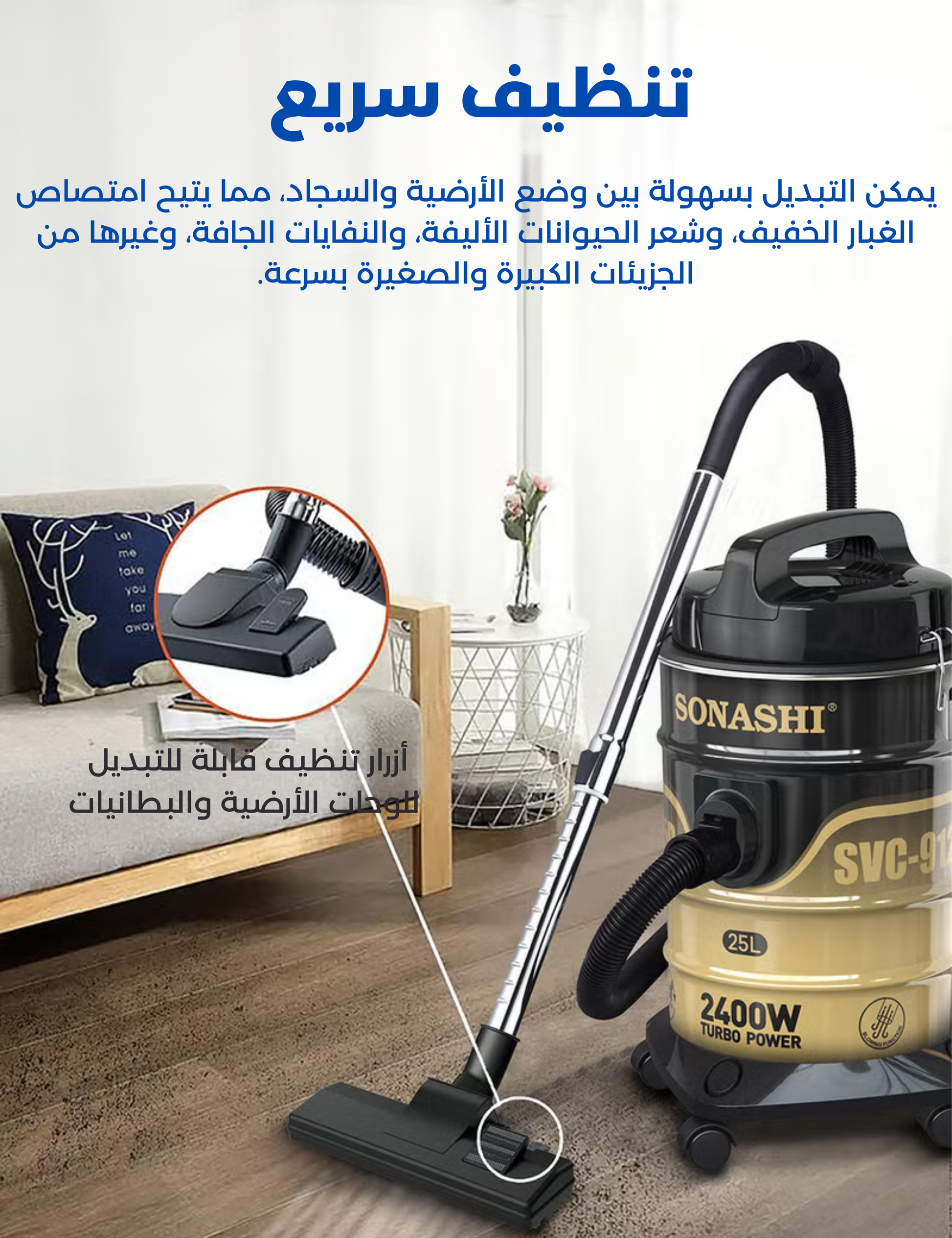 فلتر قماشي قوي يعمل على حبس الغبار والأوساخ بشكل فعال، مما يضمن لك بيئة نظيفة وصحية. مع سعة كبيرة تصل إلى 25 لترًا، ستتمكن من تنظيف مساحة واسعة دون الحاجة لإفراغ الحاوية بشكل متكرر.