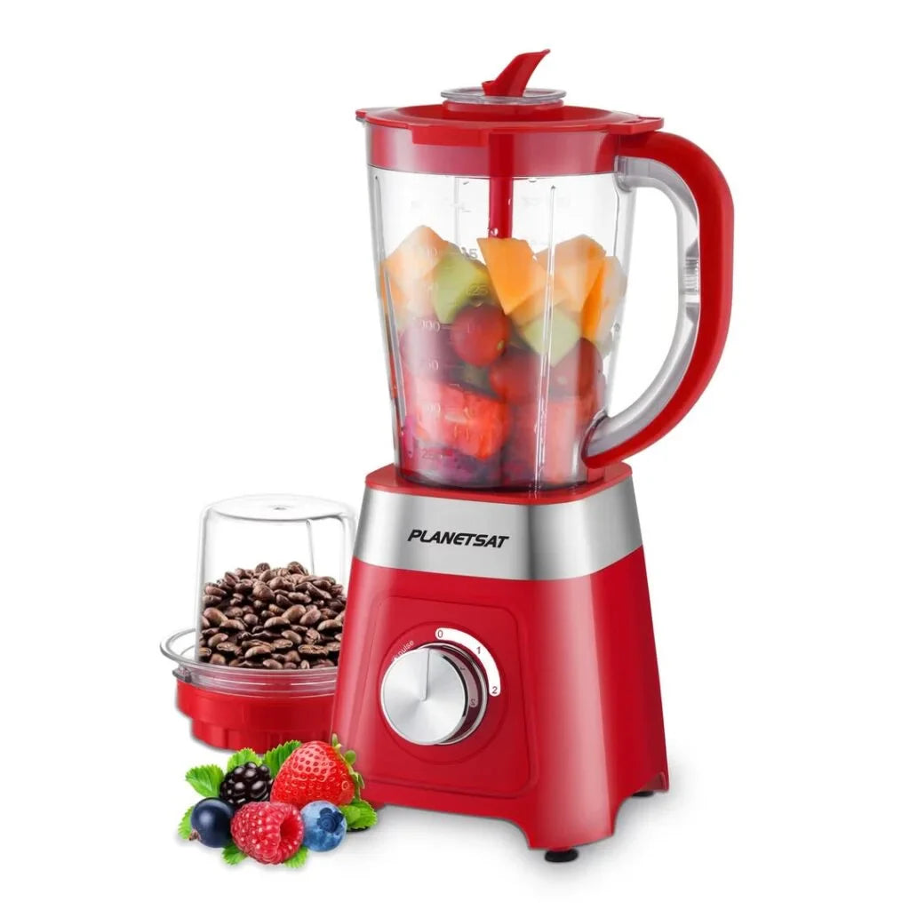 اكتشف خلاط 2 في 1 PlanetSat PBL-1925 الأحمر، شريكك المثالي في المطبخ! حضّر سموذي، صلصات، عصائر طازجة وحتى الكوكتيلات المثلجة بسهولة وسرعة مع وظائفه 2 في 1.