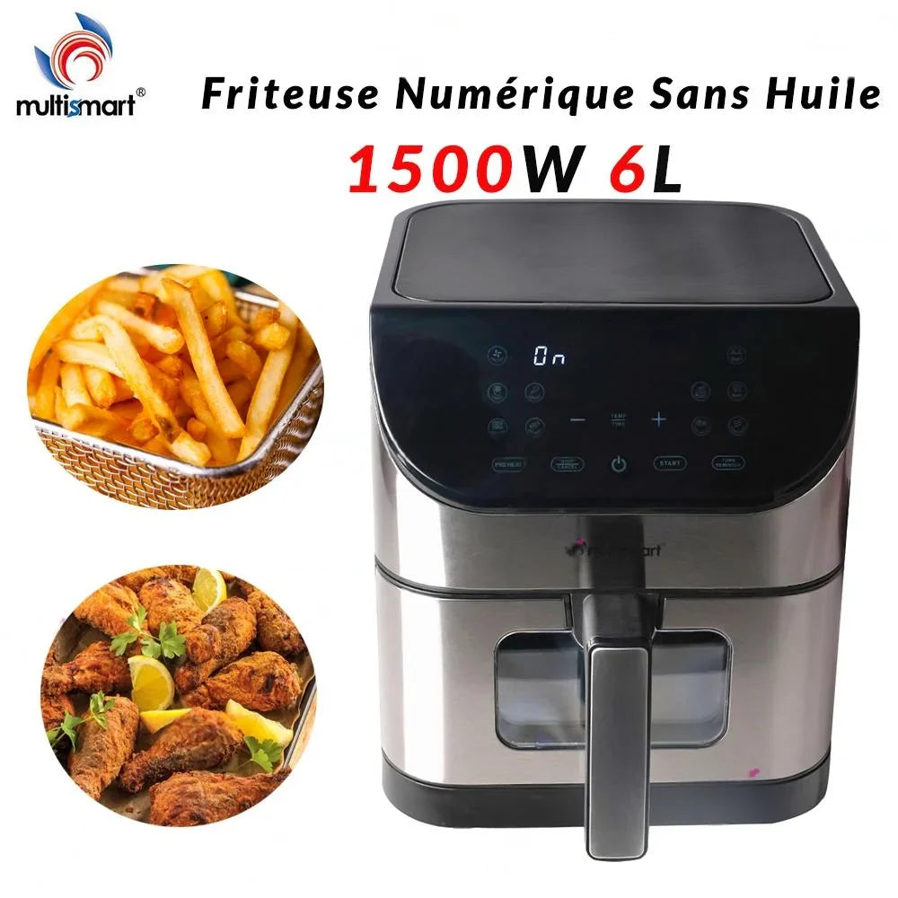 Friteuse INOX Sans Huile Numérique 6L 1500W Avec Fenêtre Multismart MS-AF3336